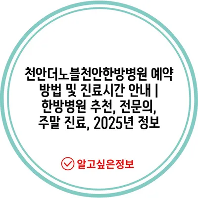 천안더노블천안한방병원 예약 방법 및 진료시간 공지 | 한방병원 추천, 전연락, 주말 진료, 2025년 정보 에 대해 자주 묻는 질문 TOP 5