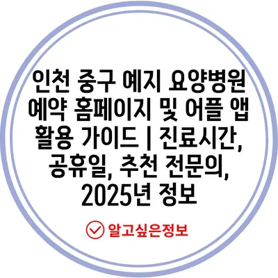 ✅ 인천 중구 예지 요양병원 예약 방법을 지금 바로 알아보세요!