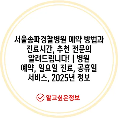 서울송파경찰병원 예약 방법과 진료시간, 추천 전연락 알려제공합니다! | 병원 예약, 일요일 진료, 공휴일 서비스, 2025년 정보 에 대해 자주 묻는 질문 TOP 5