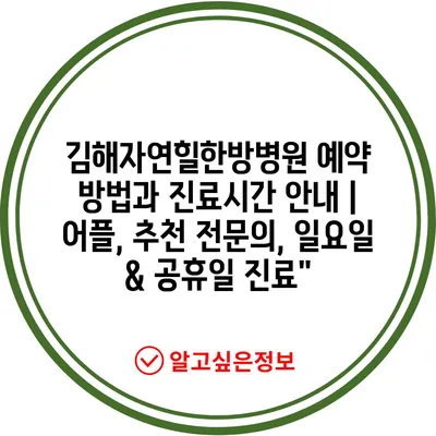 ✅ 김해자연힐한방병원의 예약 방법을 상세히 알아보세요.