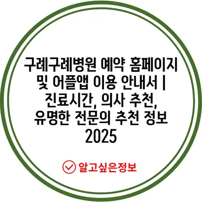 ✅ 구례구례병원에서 편리하게 예약하는 방법을 알아보세요.