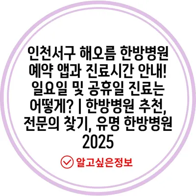 ✅ 인천서구 해오름 한방병원의 진료시간과 예약 안내를 알아보세요.