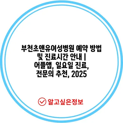 부천초앤유여성병원 예약 방법 및 진료시간 공지 | 어플앱, 일요일 진료, 전연락 추천, 2025 에 대해 자주 묻는 질문 TOP 5