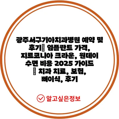 광주서구기아치과병원 예약 및 후기| 임플란트 가격, 지르코니아 크라운, 원데이 수면 비용 2025 설명서 | 치과 치료, 보험, 뼈이식, 후기에 대한 내용을 제공하겠습니다.