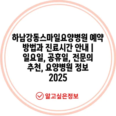 하남강동스마일요양병원 예약 방법과 진료시간 공지 | 일요일, 공휴일, 전연락 추천, 요양병원 정보 2025 에 대해 자주 묻는 질문 TOP 5