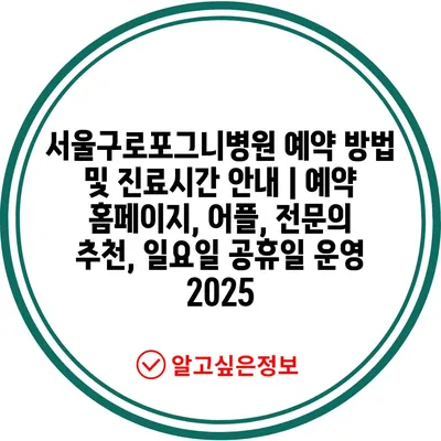 서울구로포그니병원 예약 방법 및 진료시간 공지 | 예약 홈페이지, 어플, 전연락 추천, 일요일 공휴일 운영 2025 에 대해 자주 묻는 질문 TOP 5