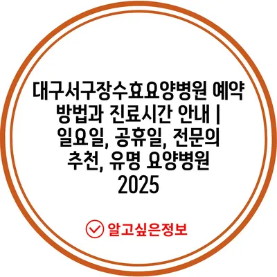 대구서구장수효요양병원 예약 방법과 진료시간 공지 | 일요일, 공휴일, 전연락 추천, 유명 요양병원 2025 에 대해 자주 묻는 질문 TOP 5