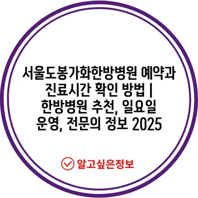 서울도봉가화한방병원 예약과 진료시간 확인 방법 | 한방병원 추천, 일요일 운영, 전연락 정보 2025 에 대해 자주 묻는 질문 TOP 5