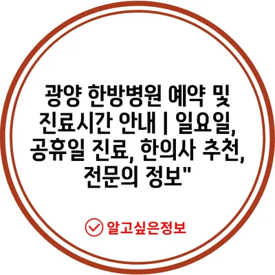 광양 한방병원 예약 및 진료시간 안내 | 일요일, 공휴일 진료, 한의사 추천, 전문의 정보”