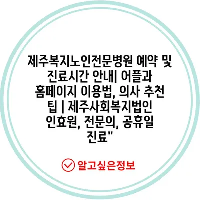 제주복지노인전문병원 예약 및 진료시간 공지| 어플과 홈페이지 이용법, 의사 추천 팁 | 제주사회복지법인 인효원, 전연락, 공휴일 진료