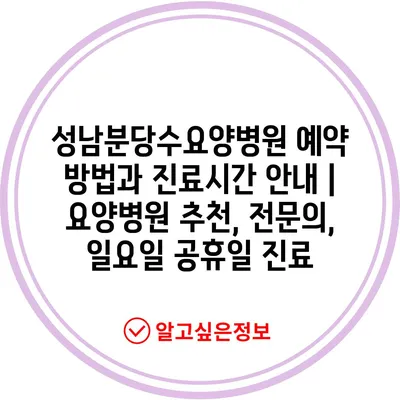 ✅ 성남분당수요양병원 예약 방법을 자세히 알아보세요!