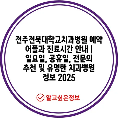 전주전북대학교치과병원 예약 어플과 진료시간 안내 | 일요일, 공휴일, 전문의 추천 및 유명한 치과병원 정보 2025