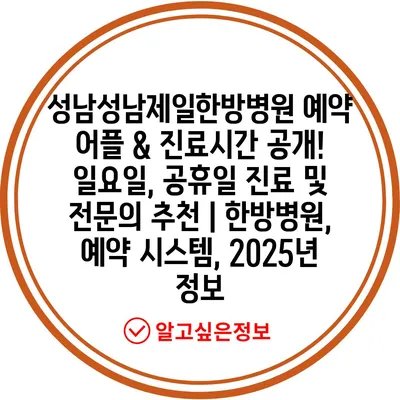 성남성남제일한방병원 예약 어플 & 진료시간 공개! 일요일, 공휴일 진료 및 전문의 추천 | 한방병원, 예약 시스템, 2025년 정보
