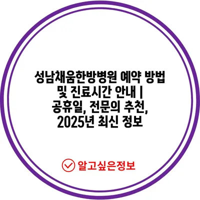 성남채움한방병원 예약 방법 및 진료시간 공지 | 공휴일, 전연락 추천, 2025년 최신 정보 에 대해 자주 묻는 질문 TOP 5