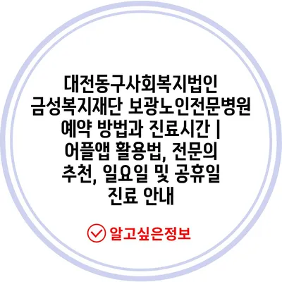 대전동구사회복지법인 금성복지재단 보광노인전문병원 예약 방법과 진료시간 | 어플앱 활용법, 전연락 추천, 일요일 및 공휴일 진료 공지 에 대해 자주 묻는 질문 TOP 5