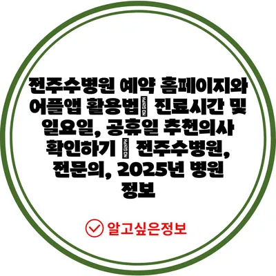 전주수병원 예약 홈페이지와 어플앱 활용법| 진료시간 및 일요일, 공휴일 추천의사 확인하기 | 전주수병원, 전연락, 2025년 병원 정보 에 대해 자주 묻는 질문 TOP 5