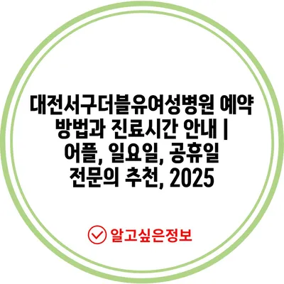 ✅ 대전서구더블유여성병원 예약 방법과 진료시간을 상세히 알아보세요.