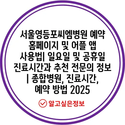 서울영등포씨엠병원 예약 홈페이지 및 어플 앱 사용법| 일요일 및 공휴일 진료시간과 추천 전문의 정보 | 종합병원, 진료시간, 예약 방법 2025