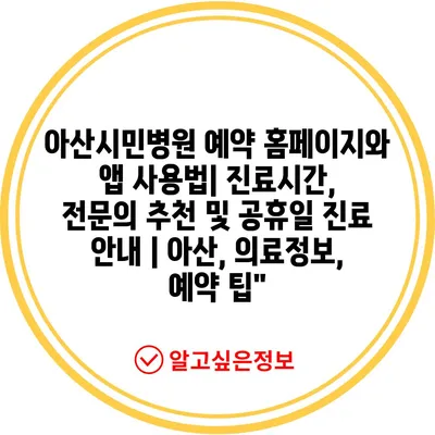 아산시민병원 예약 홈페이지와 앱 사용법| 진료시간, 전연락 추천 및 공휴일 진료 공지 | 아산, 의료정보, 예약 팁