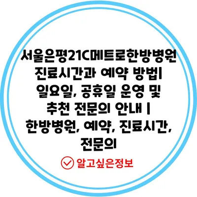 서울은평21C메트로한방병원 진료시간과 예약 방법| 일요일, 공휴일 운영 및 추천 전연락 공지 | 한방병원, 예약, 진료시간, 전연락 에 대해 자주 묻는 질문 TOP 5