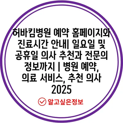 허바킴병원 예약 홈페이지와 진료시간 공지| 일요일 및 공휴일 의사 추천과 전연락 정보까지 | 병원 예약, 의료 서비스, 추천 의사 2025 에 대해 자주 묻는 질문 TOP 5
