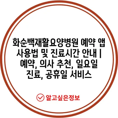 화순백재활요양병원 예약 앱 사용법 및 진료시간 공지 | 예약, 의사 추천, 일요일 진료, 공휴일 서비스에 대해 소개합니다.