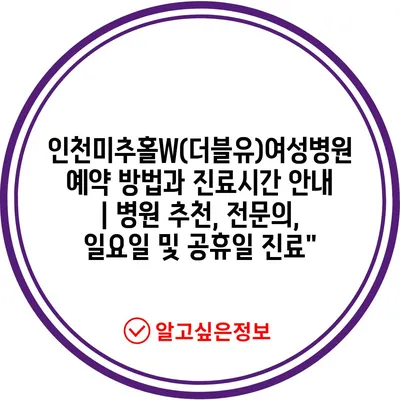 ✅ 인천미추홀W여성병원의 진료시간과 예약 방법을 알아보세요!