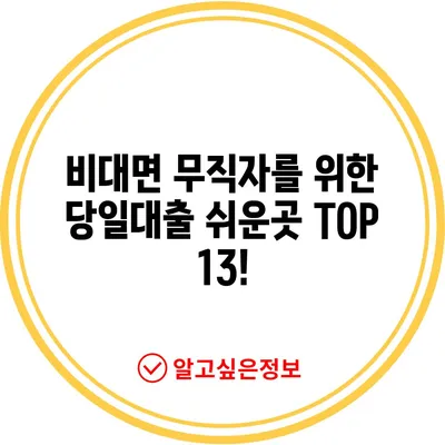 당일대출이 필요한 상황에서 무직자도 쉽게 이용할 수 있는 대출 상품을 찾는 것은 쉬운 일이 아닙니다. 이번 포스팅에서는 당일대출 쉬운곳 TOP 13을 정리하고, 비대면으로 대출 가능한 상품들에 대해 깊이 있는 설명을 드리겠습니다. 특히, 대출을 신청하는데 필요한 조건과 절차를 상세히 안내드릴 테니, 필요한 정보를 미리 확인하세요.