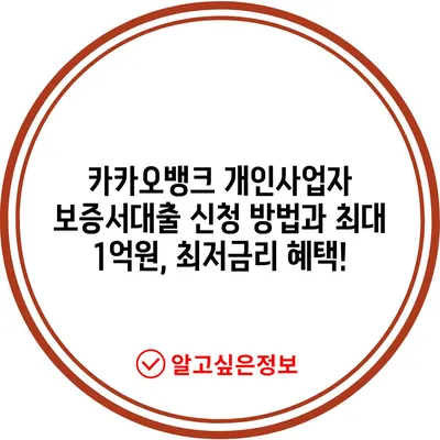 카카오뱅크 개인사업자 보증서대출 신청 방법과 최대 1억원, 최저금리 혜택!