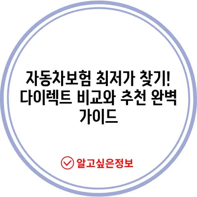 자동차보험 최저가 찾기! 다이렉트 비교와 추천 완벽 가이드