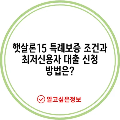 Meta Description: 햇살론15 특례보증 조건 및 신청방법에 대해 상세히 알아보세요. 저신용자를 위한 대출 상품으로 최적의 조건을 논의합니다.