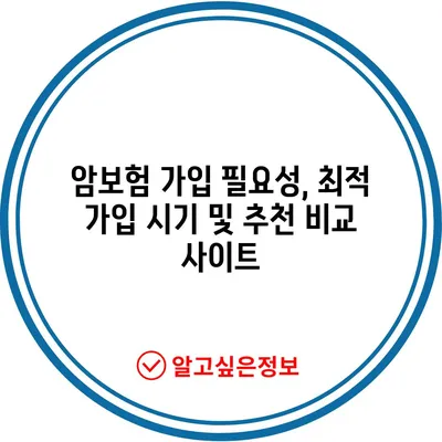 💡 암보험의 필요성과 가입 시기를 지금 바로 알아보세요. 💡