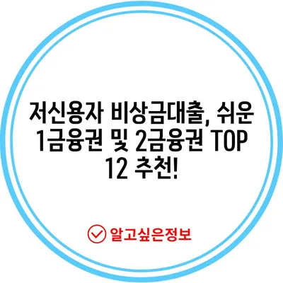 이 블로그 포스트에서는 저신용자도 쉽게 이용할 수 있는 비상금대출 상품에 대해 알아보겠습니다. 저신용자 비상금대출 쉬운 곳 TOP 12 1금융권 및 2금융권 상품 추천을 통해 급전이 필요할 때 도움을 받을 수 있는 방법을 제시하겠습니다.