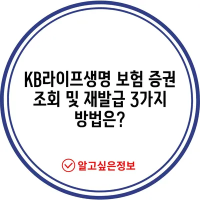 Meta Description: KB라이프생명 보험 증권 다운로드 조회 재발급 3가지 방법에 대해 상세히 안내드립니다. 실시간으로 보험 증권을 확인하고 재발급하는 방법을 알아보세요.