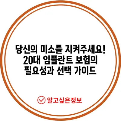 20대 임플란트 보험의 중요성과 필요성을 알아보세요. 치아 건강을 지키며 자신감을 가지는 방법을 설명합니다.