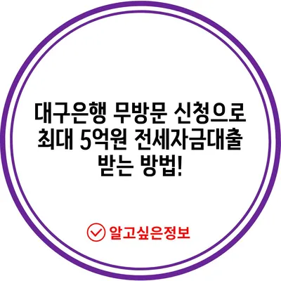 💡 대구은행의 무방문 전세자금대출 혜택을 자세히 알아보세요. 💡