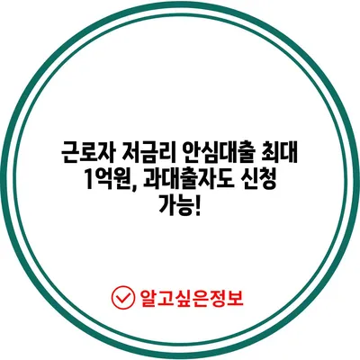 근로자 저금리 안심대출 혜택 및 신청방법을 알아보세요. 최대 1억원 대출이 가능하며, 과대출자도 이용할 수 있습니다.