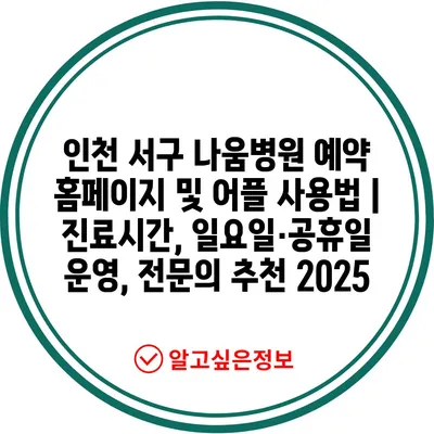 인천 서구 나움병원 예약 홈페이지 및 어플 사용법 | 진료시간, 일요일·공휴일 운영, 전연락 추천 2025에 대해 알아보겠습니다.