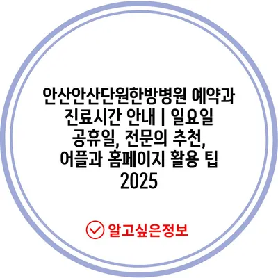 안산안산단원한방병원 예약과 진료시간 공지 | 일요일 공휴일, 전연락 추천, 어플과 홈페이지 활용 팁 2025 에 대해 자주 묻는 질문 TOP 5