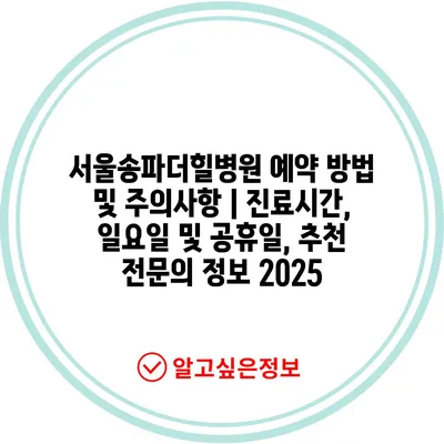 ✅ 서울송파더힐병원 예약 방법과 주의사항을 자세히 알아보세요.