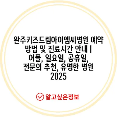 완주키즈드림아이엠씨병원 예약 방법 및 진료시간 안내 | 어플, 일요일, 공휴일, 전문의 추천, 유명한 병원 2025
