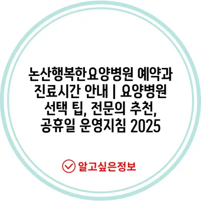 논산행복한요양병원 예약과 진료시간 안내 | 요양병원 선택 팁, 전문의 추천, 공휴일 운영지침 2025