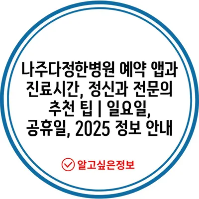 나주다정한병원 예약 앱과 진료시간, 정신과 전연락 추천 팁 | 일요일, 공휴일, 2025 정보 공지 에 대해 자주 묻는 질문 TOP 5