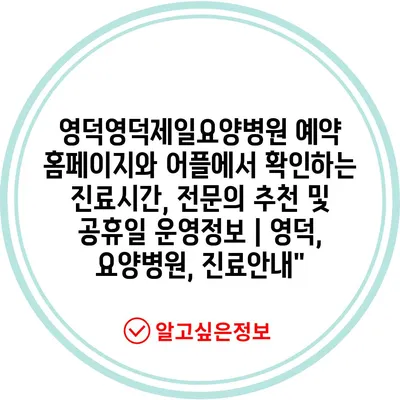 ✅ 영덕영덕제일요양병원의 진료시간과 예약 방법을 지금 바로 알아보세요.