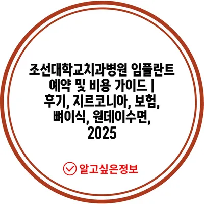 조선대학교치과병원 임플란트 예약 및 비용 설명서 | 후기, 지르코니아, 보험, 뼈이식, 원데이수면, 2025
