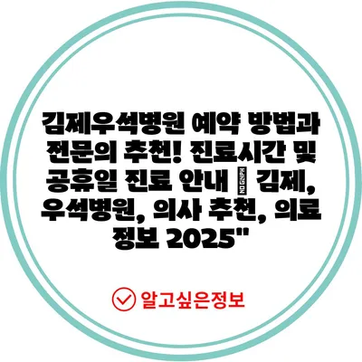김제우석병원 예약 방법과 전연락 추천! 진료시간 및 공휴일 진료 공지 | 김제, 우석병원, 의사 추천, 의료 정보 2025에 대해 자주 묻는 질문 TOP 5