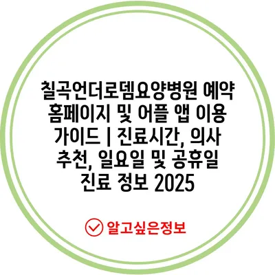 칠곡언더로뎀요양병원 예약 홈페이지 및 어플 앱 이용 설명서 | 진료시간, 의사 추천, 일요일 및 공휴일 진료 정보 2025