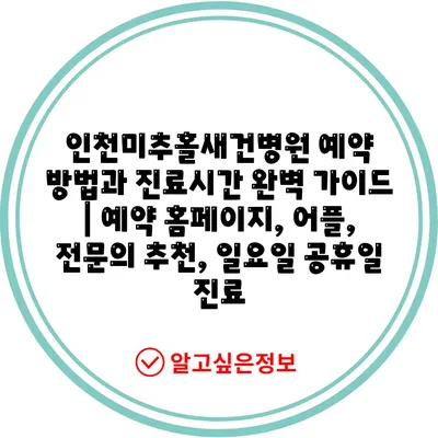 인천미추홀새건병원 예약 방법과 진료시간 완벽 설명서 | 예약 홈페이지, 어플, 전연락 추천, 일요일 공휴일 진료 에 대해 자주 묻는 질문 TOP 5