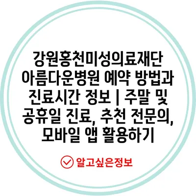 강원홍천미성의료재단 아름다운병원 예약 방법과 진료시간 정보 | 주말 및 공휴일 진료, 추천 전연락, 모바일 앱 활용하기 에 대해 자주 묻는 질문 TOP 5
