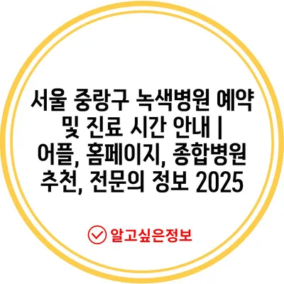 서울 중랑구 녹색병원 예약 및 진료 시간 공지 | 어플, 홈페이지, 종합병원 추천, 전연락 정보 2025 에 대해 자주 묻는 질문 TOP 5